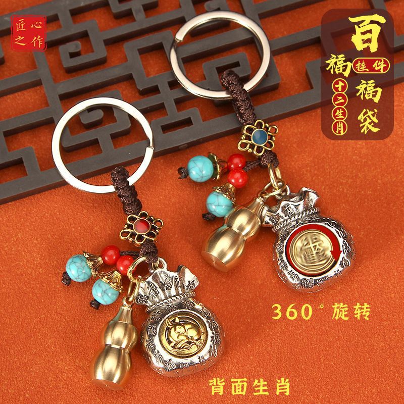 Rinjin Doo Labu Emas Tas Uang Pak Fook Gantungan Kunci Berputar Zodiak Dua belas Perhiasan Gantung Mobil Pria