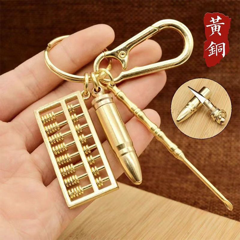Gantungan Kunci Pisau Peluru Kuningan Alat Ekspres Unik Liontin Labu Tembaga Imitasi Aksesori Gantung Cincin Angin Cina Mobil