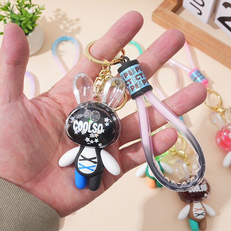 Gantungan kunci pasangan kartun akrilik, gantungan kunci kelinci boneka mobil rantai kunci tas liontin hadiah kecil grosir