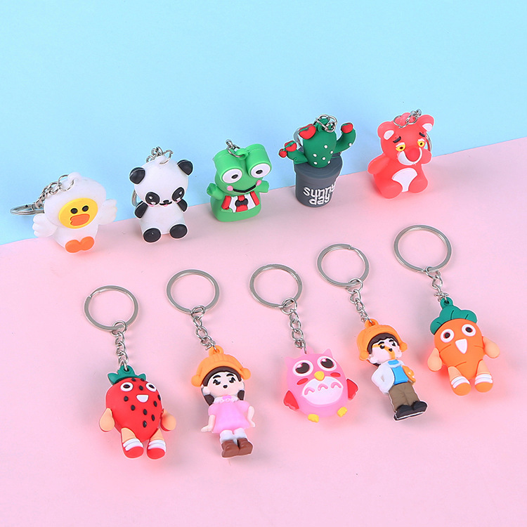 Gantungan kunci mobil boneka karet lembut 3DPVC, gantungan kunci mobil tas dua sisi kartun lucu liontin cincin
