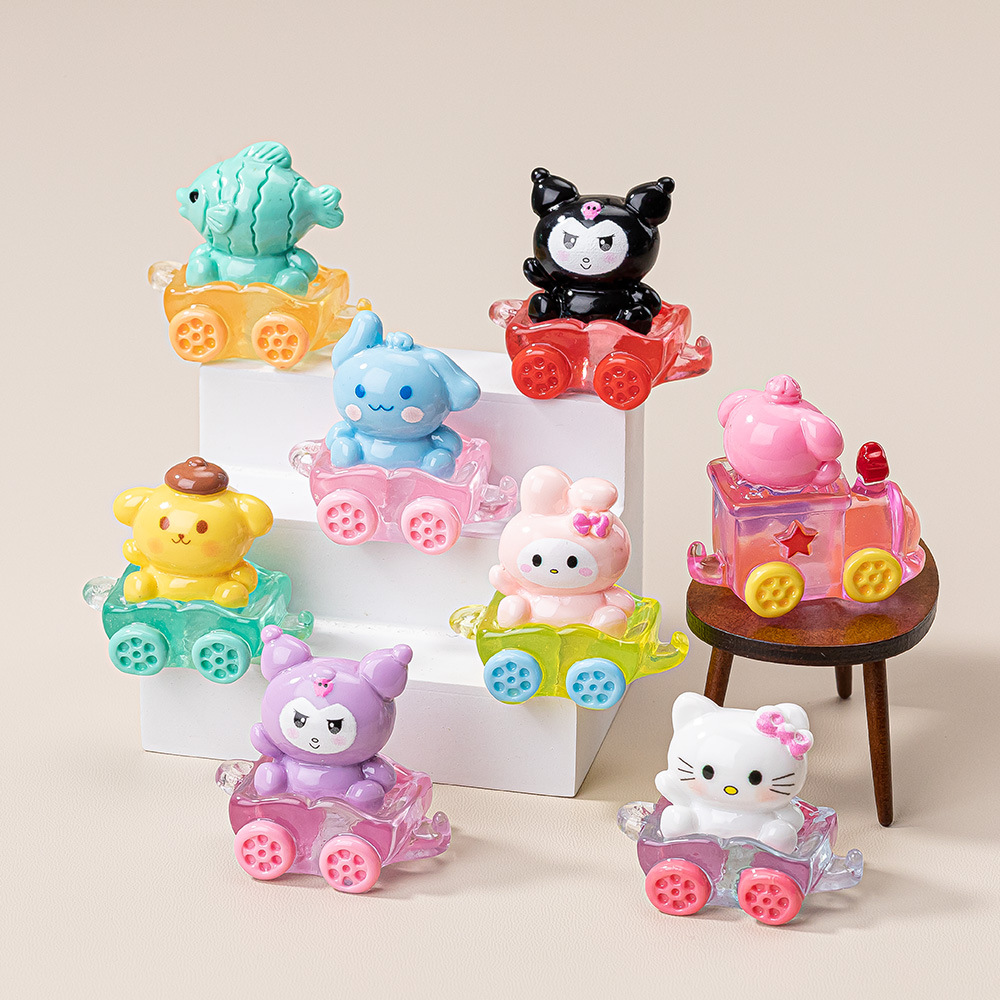 卡通动物小火车 萌粒盲袋diy饰品配件树脂潮玩公仔桌面车载小摆件