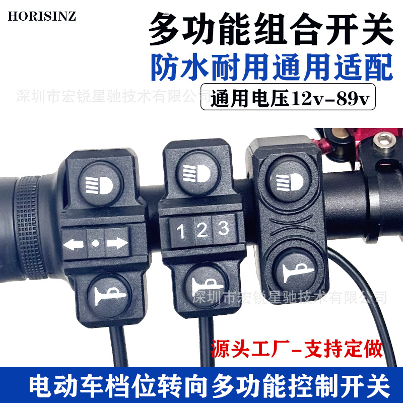 Aksesori Mobil Listrik sakelar fungsional lampu depan klakson kemudi sakelar tiga dalam satu tombol tiga fungsi sakelar tiga titik