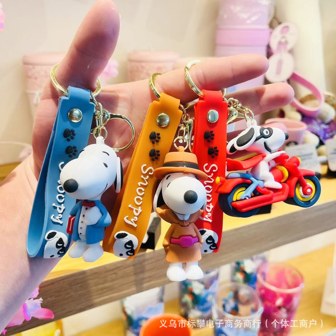 Gantungan kunci pasangan kartun Snoopy, gantungan kunci mobil liontin boneka karet lembut hadiah kecil grosir