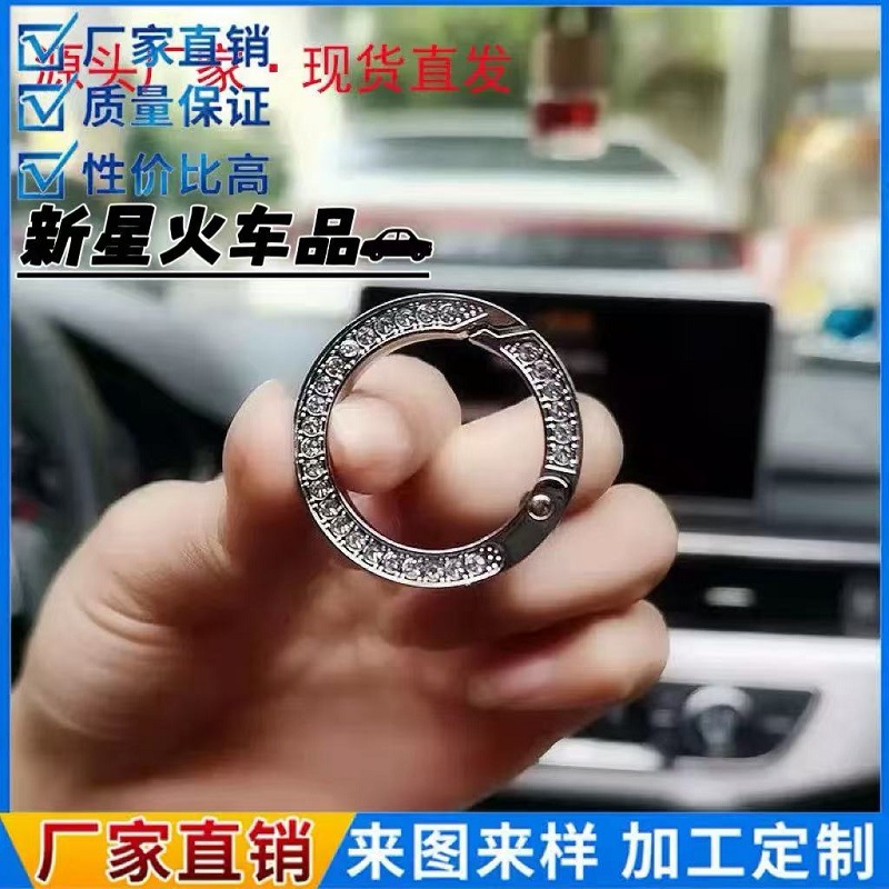 Cincin Musim Semi tertanam berlian buatan tangan dua sisi cincin terbuka gantungan kunci rumah tangga cincin kunci mobil Aksesori ornamen bagasi