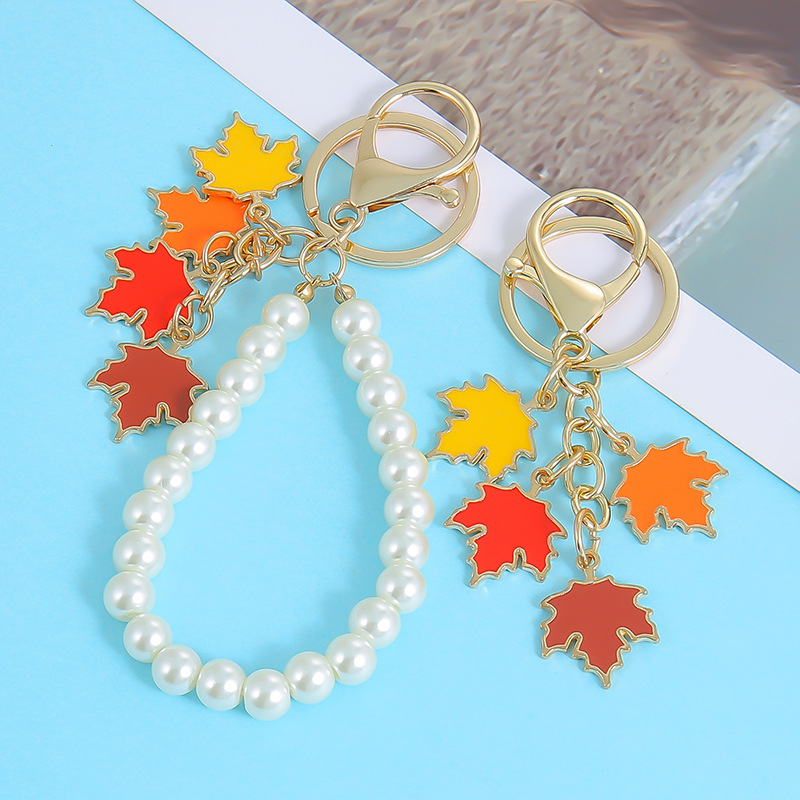 Gantungan kunci mobil mutiara kamelia besar, dekorasi tas aksesori pita busur sederhana kecil segar