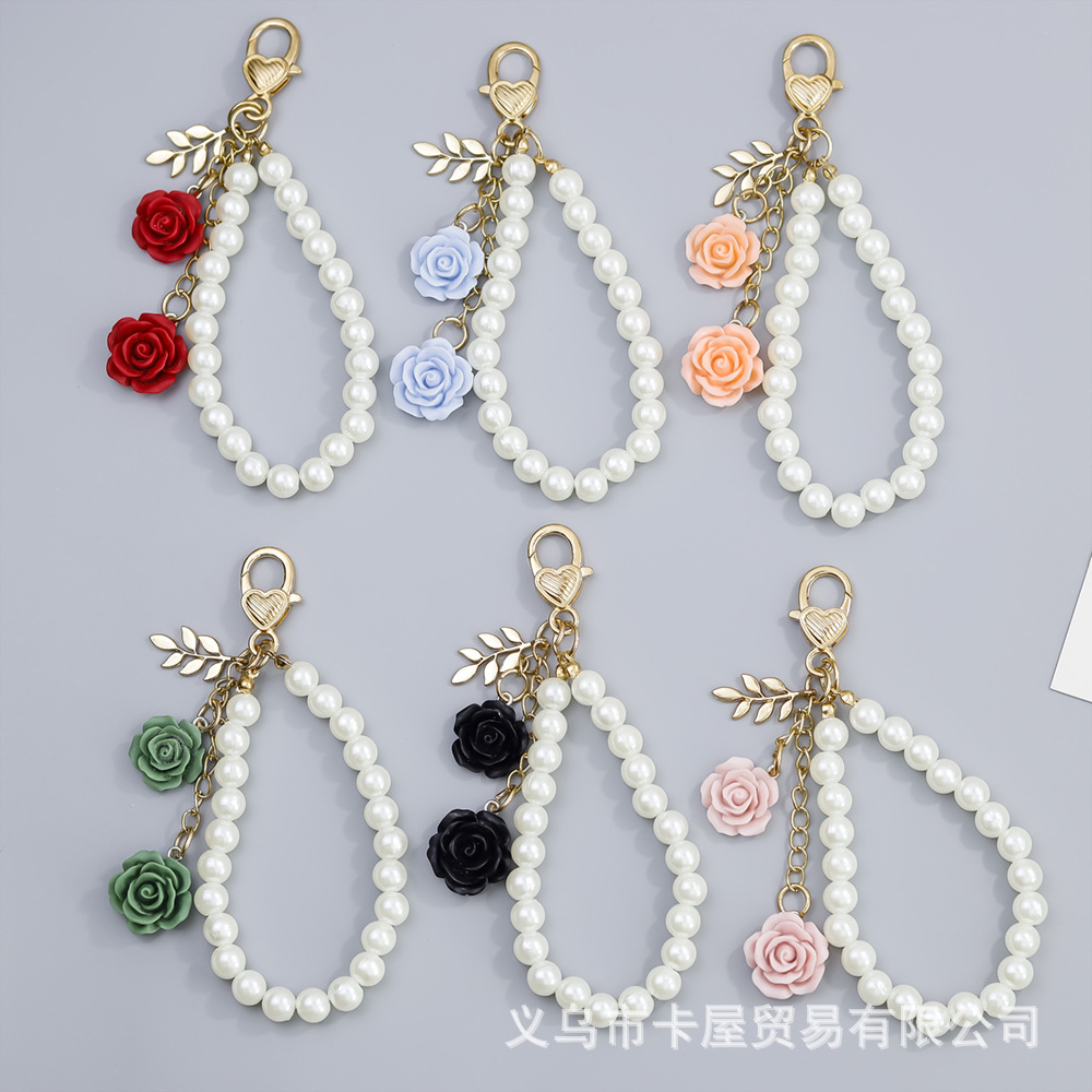 Rantai Mutiara Bunga Resin Modis Gantungan Kunci Gantungan Pintu Paduan Aksesoris Gantungan Kunci Mobil Aksesoris Liontin Mobil