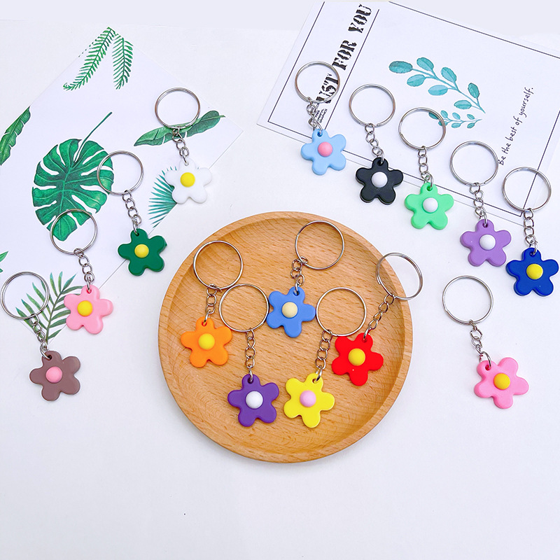 Liontin cincin kunci bunga kecil epoxy lucu liontin tas hati anak perempuan Aksesori Pasangan kreatif gantungan kunci mobil