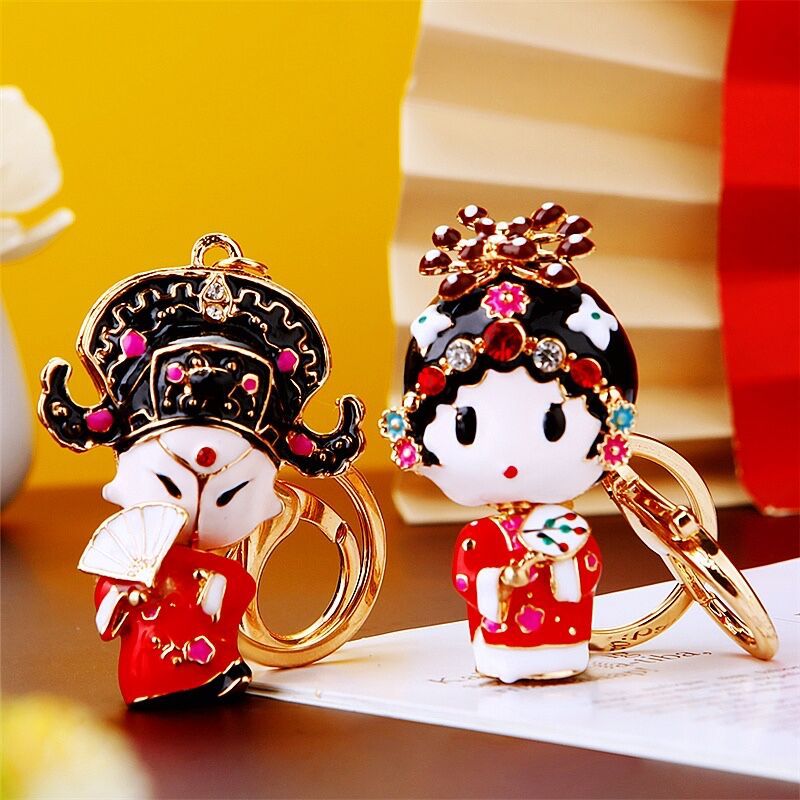 Esens Cina Opera Hua Dan gantungan kunci mobil Wusheng tas wanita liontin gantungan kunci cincin rantai berlian kreatif Aksesori hadiah grosir