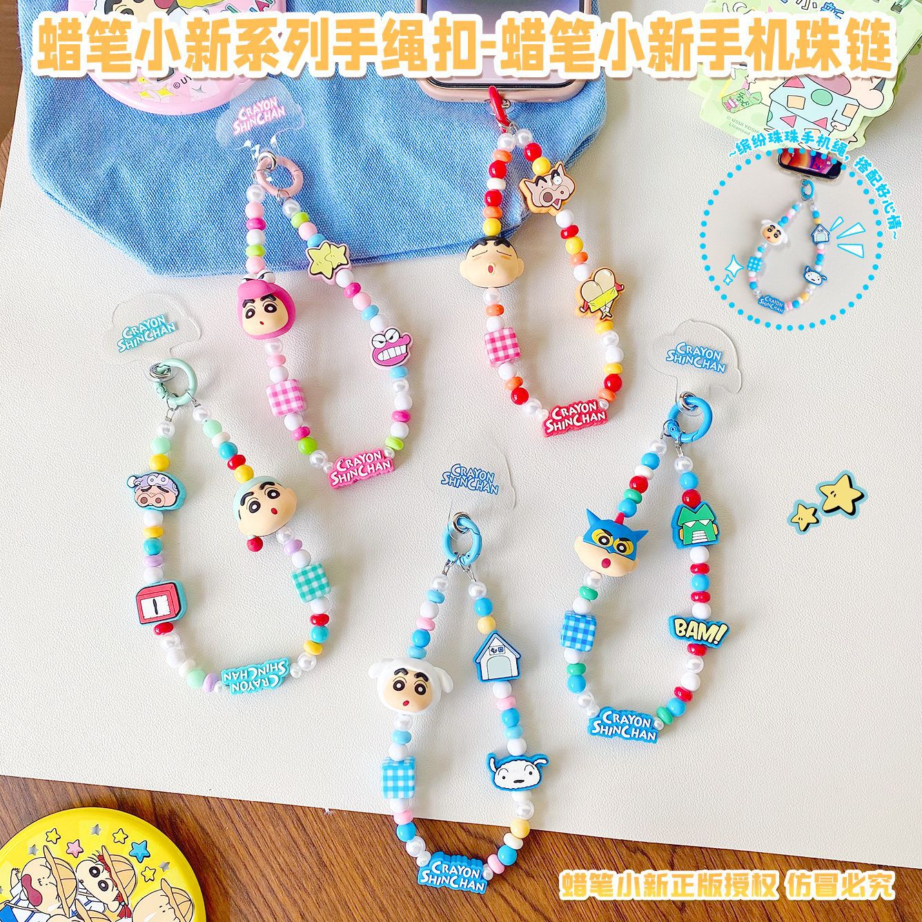 正版卡通蜡笔小新手机珠链钥匙扣可爱包包挂饰汽车钥匙链礼品批发