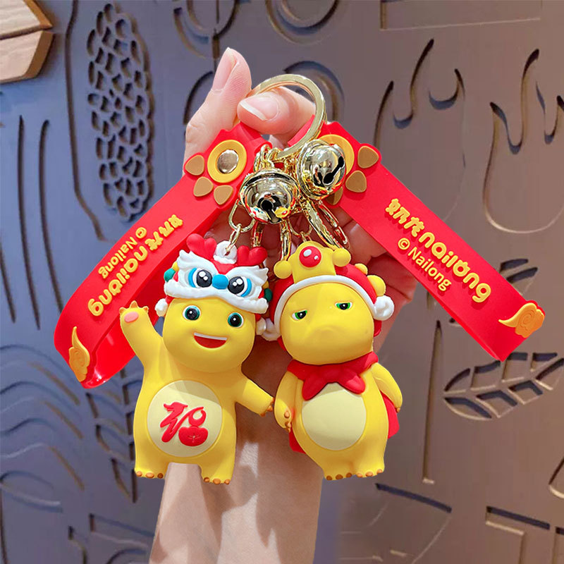 Gantungan Kunci kartun asli model naga susu, gantungan kunci mobil kreatif, gantungan kunci boneka, hadiah Tahun Baru