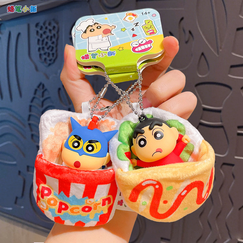 正版卡通蜡笔小新食物小窝公仔钥匙扣情侣包包挂饰汽车钥匙链礼品