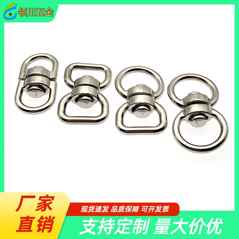 Grosir Pabrik campuran cincin berputar 8-word bagasi gantungan kunci delapan kata cincin Seng alloy anjing gesper logam berputar gesper