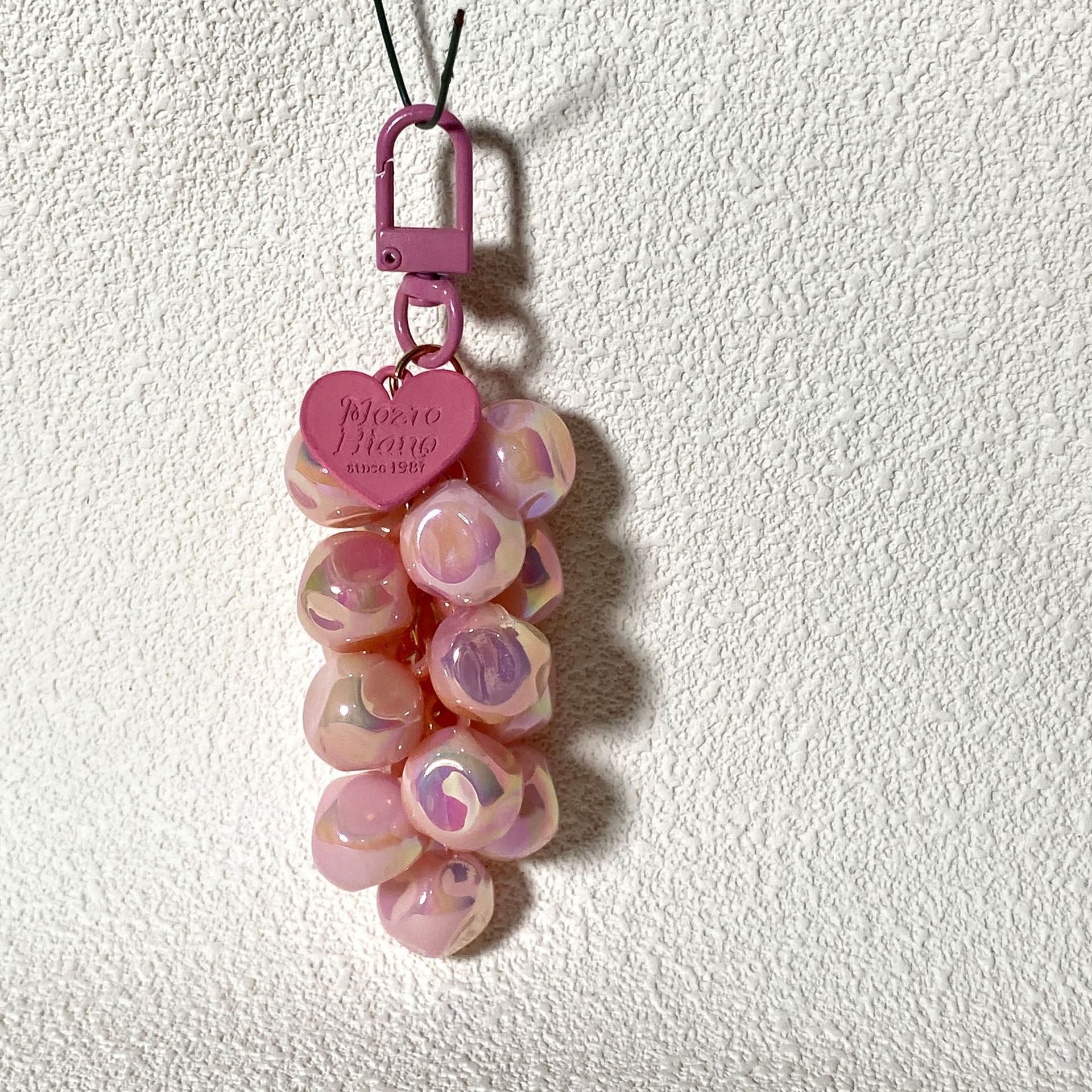 Gantungan kunci tali anggur akrilik anak perempuan, aksesori tas wanita liontin mobil warna hati manik-manik