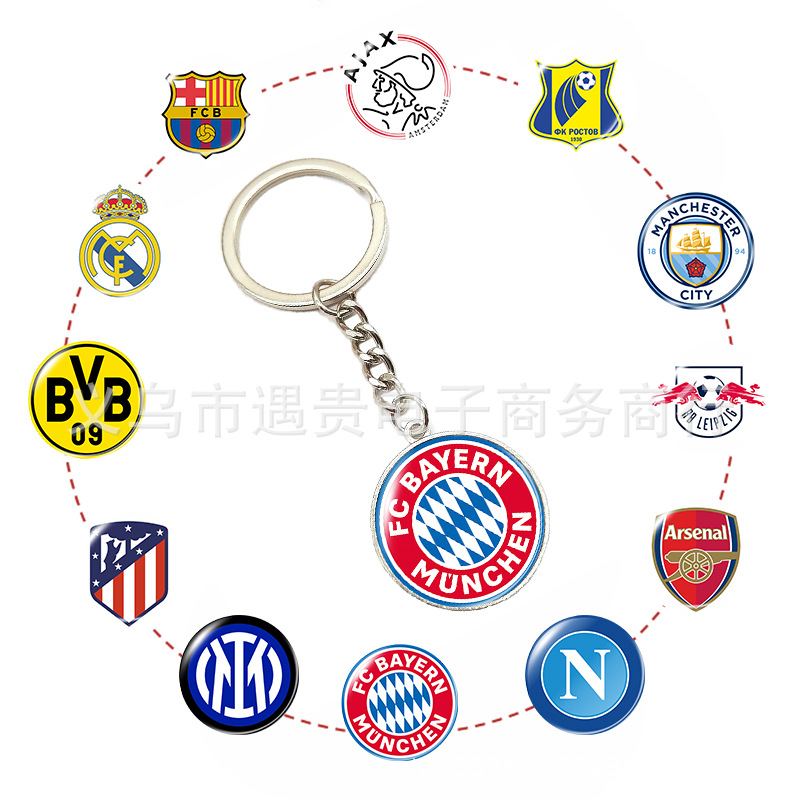 Seri A Spanyol Bundesliga liga utama tim sepak bola Perancis lencana waktu permata gantungan kunci mobil liontin Tim membuat