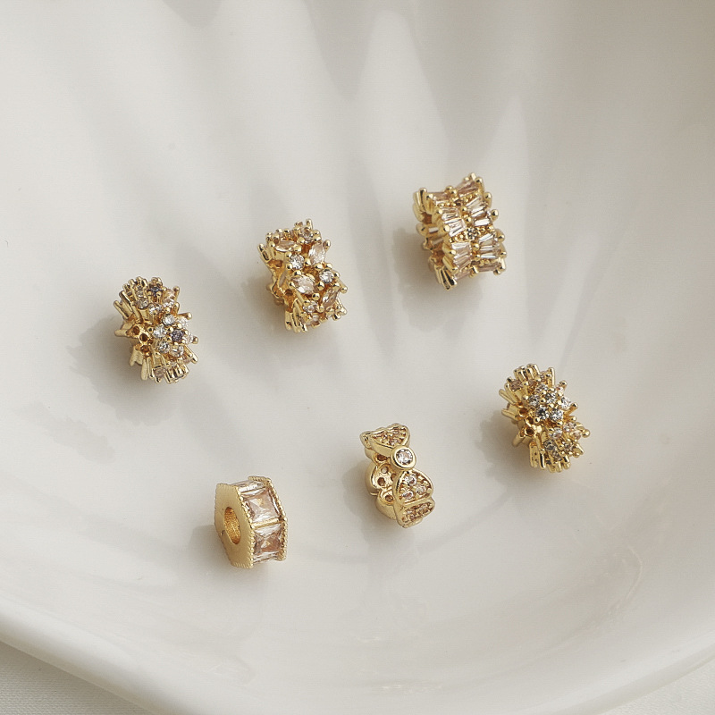 Aksesoris Perhiasan DIY Manik-manik Gelang Kristal Bunga Telinga Gandum Roda Cinta Batu Zirkon Warna Terbungkus Emas 14K