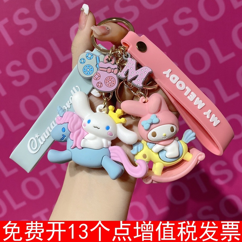 Sanrio baru boneka kartun Trojan gantungan kunci HelloKitty telinga besar sarung kunci mobil anjing tas liontin