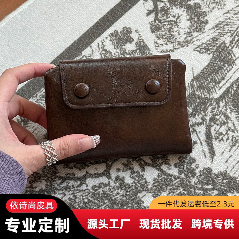 复古高级韩版软糯软包小眼睛钱包短款钱包拉链暗线零钱包卡包女