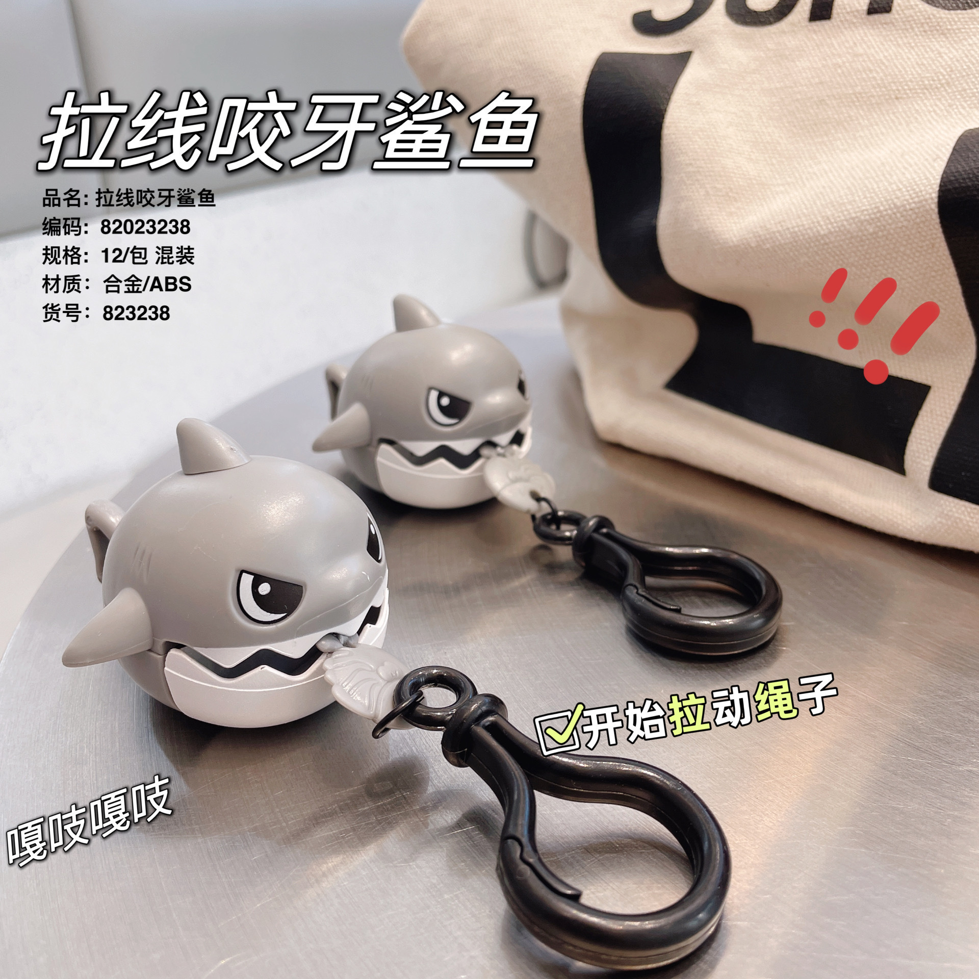 Tarik kawat gigit kartun hiu makan ikan kecil hadiah kecil mobil mainan anak-anak liontin kecil kawat tarik hiu
