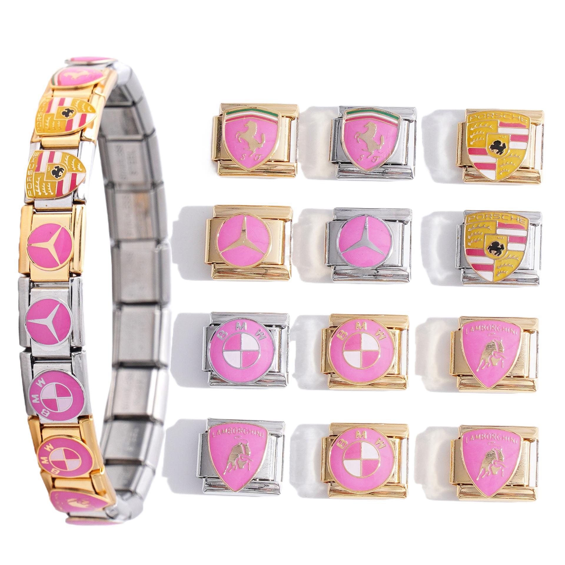 Gelang Tangan Modul Italia Seri Logo Mobil Baja Titanium Dilas Minyak DIY Elastis Rantai Sabuk