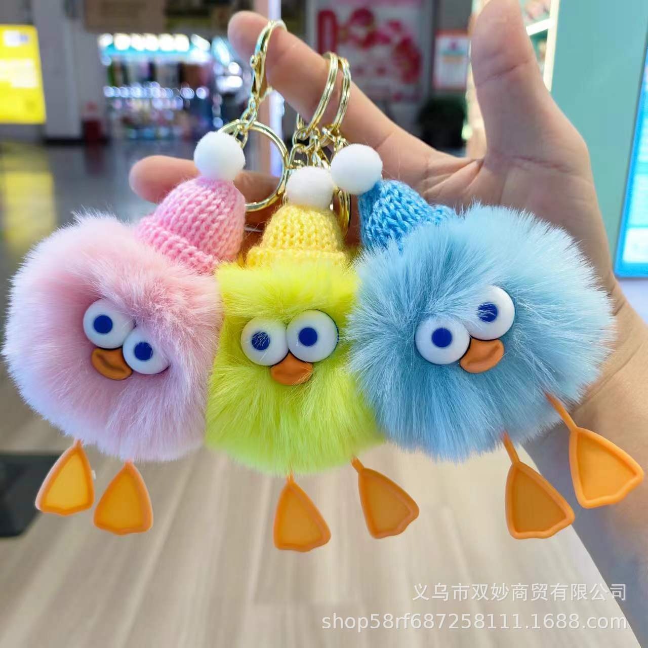 Produk baru imitasi boneka kelinci Rex bulu mata besar bebek tas liontin mobil mewah ornamen gantungan kunci grosir mesin butik khusus