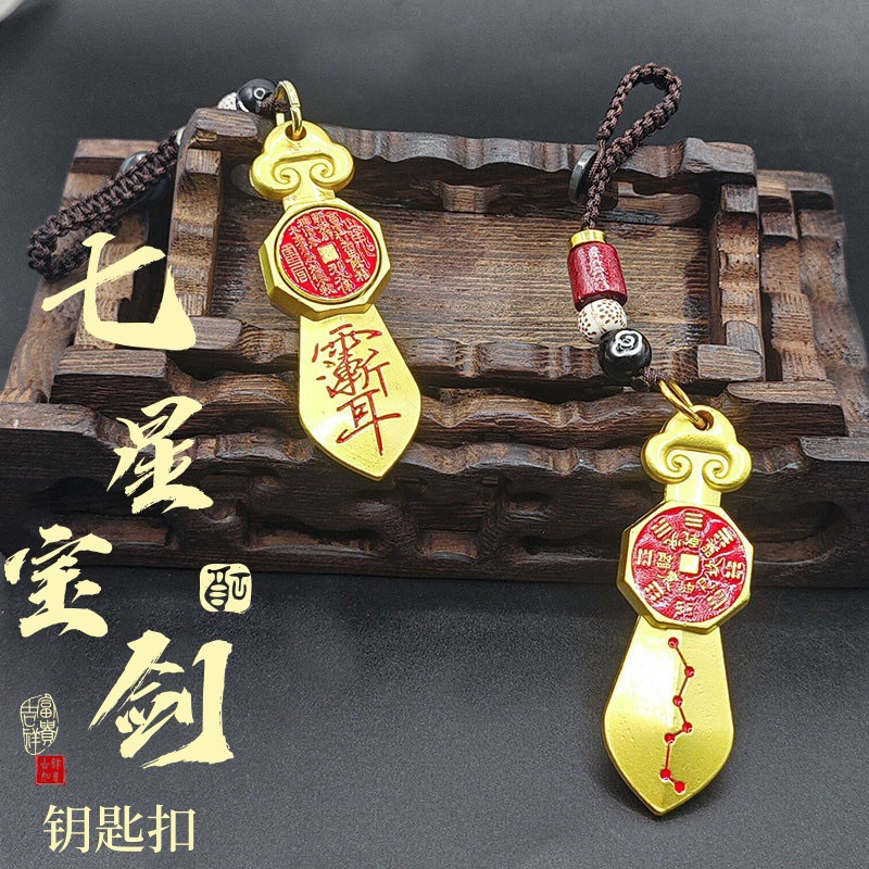 Gantungan Kunci Mobil Pedang Tujuh Bintang Kuningan Berputar Jimat Menguntungkan dan Aman Gantungan Kunci Mobil Keberuntungan