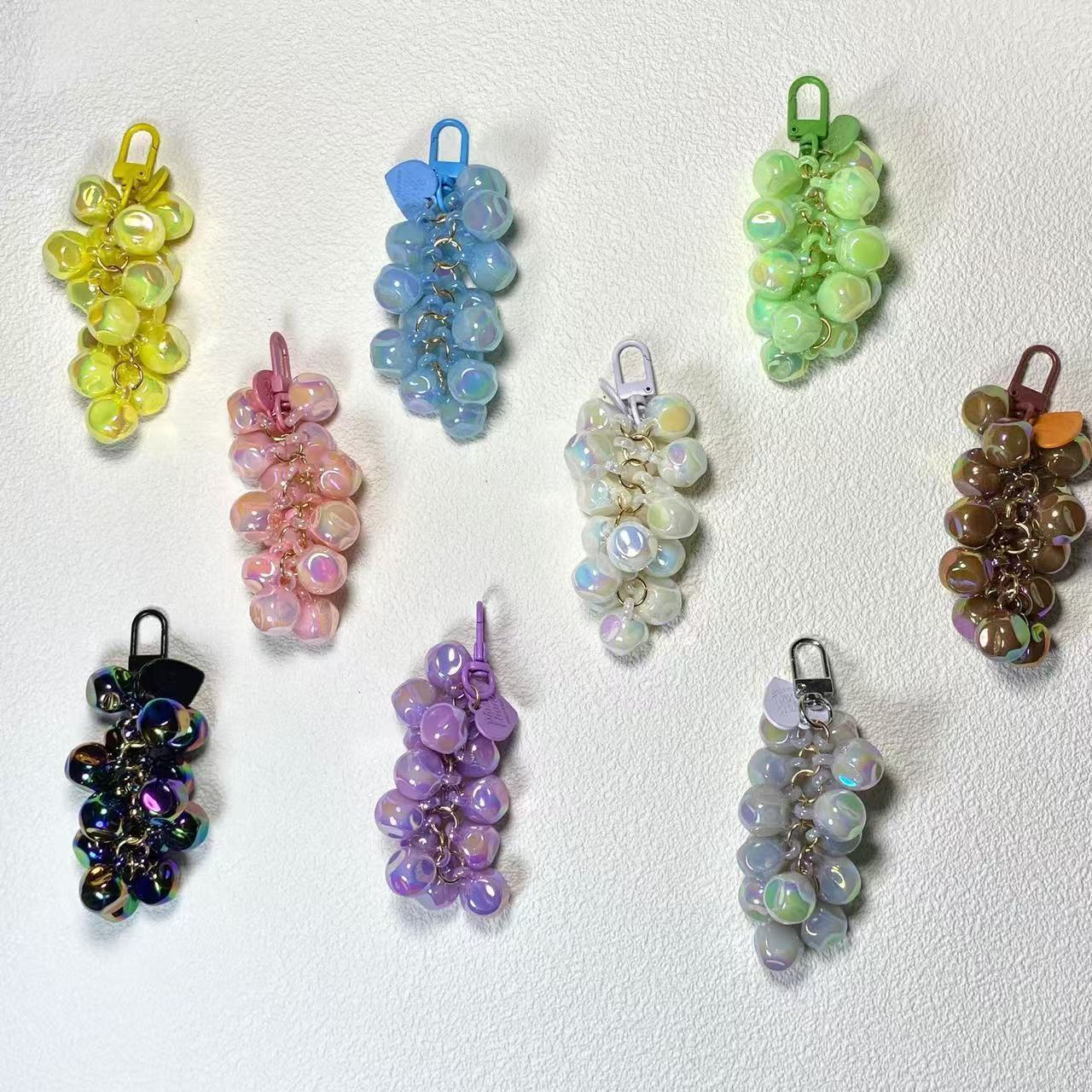Gantungan kunci rantai anggur akrilik gadis hati warna solid manik-manik gantung mobil tas wanita aksesoris gantungan