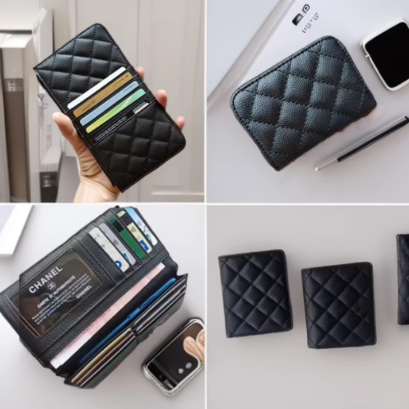 Poin tas ponsel tas kartu ritsleting tas uang besar pola kulit sederhana tas ponsel gaya channel rhombus