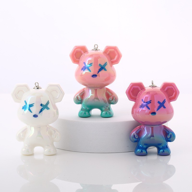 创意卡通树脂渐变色涂鸦小熊钥匙扣潮流汽车钥匙链可爱包包小挂饰