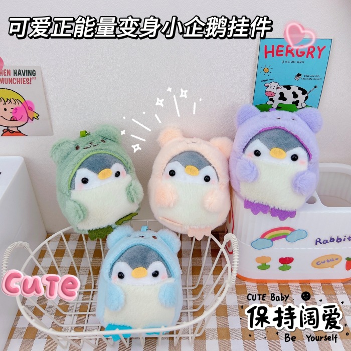 Boneka anak perempuan liontin transformasi Penguin kecil energi positif lucu boneka empuk Hati kreatif gantungan kunci mobil tas sekolah ornamen