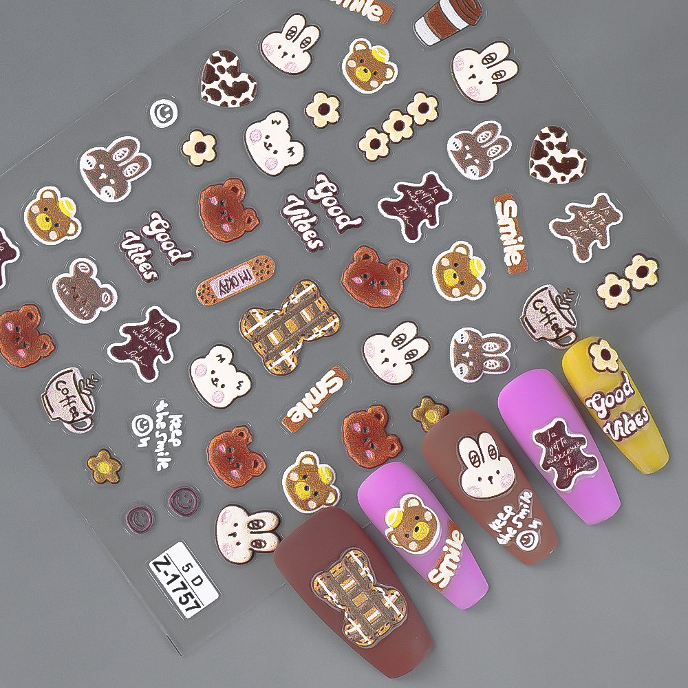 可爱小动物图案美甲贴纸立体浮雕猫咪甲片饰品防水指甲贴 现货批