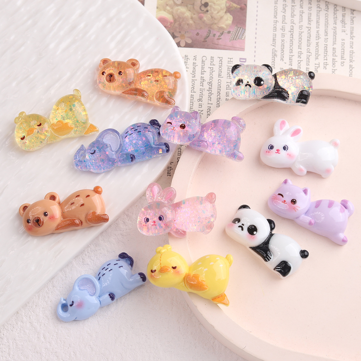 Aksesoris Resin DIY Kartun Jepit Rambut Krim Hewan Berbaring Jepit Rambut Casing Ponsel Gesper Sepatu Gantungan Kunci Liontin