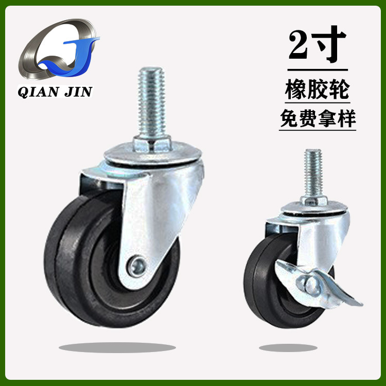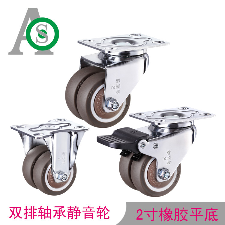 Roda karet 2 inci, roda datar baris ganda rem ganda, bantalan beban TPR, roda pabrik