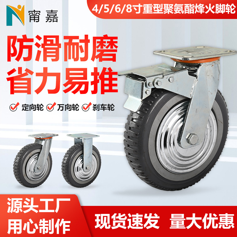 Roda kastor universal poliuretan 4 inci, roda Pengarah roda rem rol karet keranjang tugas berat 5/6/8 inci