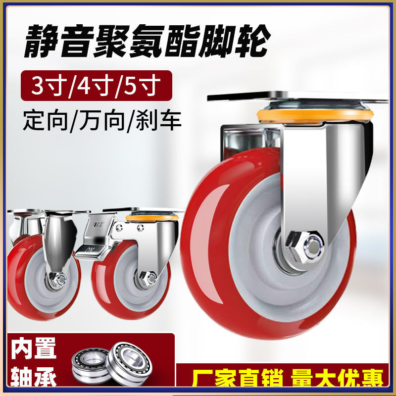 Roda Universal, roda Universal 3-5 inci bantalan beban, roda katrol, kemudi Pengarah dengan rem, troli senyap