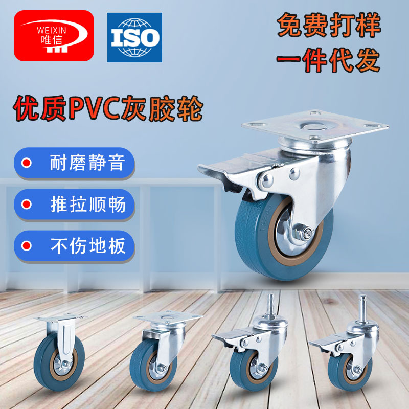 Pasokan langsung pabrik roda karet ringan 3 inci arah 4-inci roda makan roda universal dengan roda lem abu-abu rem