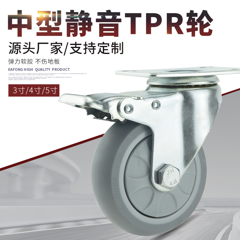 TPR roda tunggal 3 inci 4 inci 5 inci, caster troli Roda universal sunyi, roda industri, roda tunggal