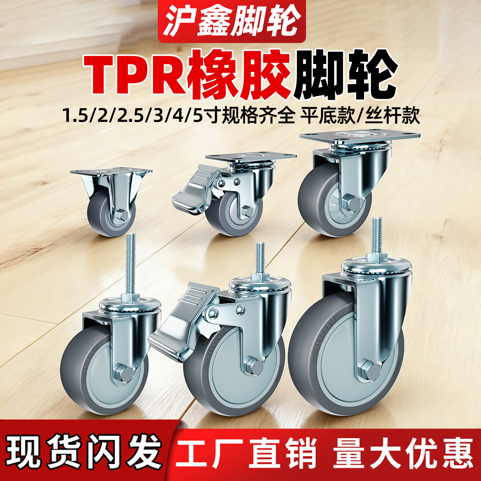 Kastor bisu 3 inci 4 inci 5 inci, TPR sedang elastis tinggi roda sekrup batang dengan roda rem roda troli