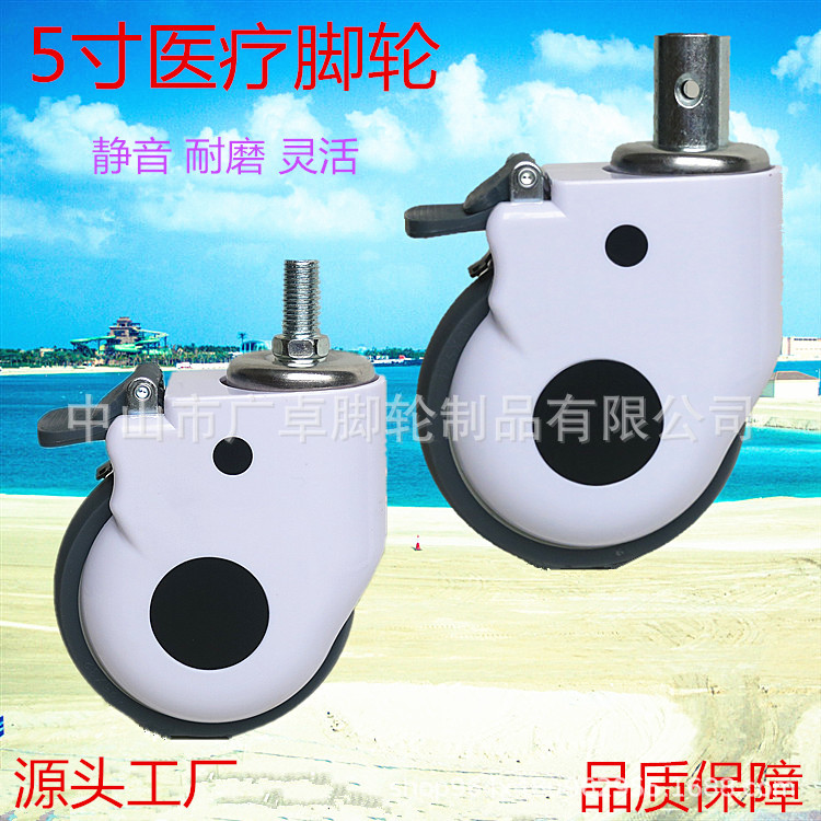 5 inci kastor roti medis batang steker sekrup batang perawatan rumah sakit tempat tidur tandu troli TPR karet lembut bisu roda universal