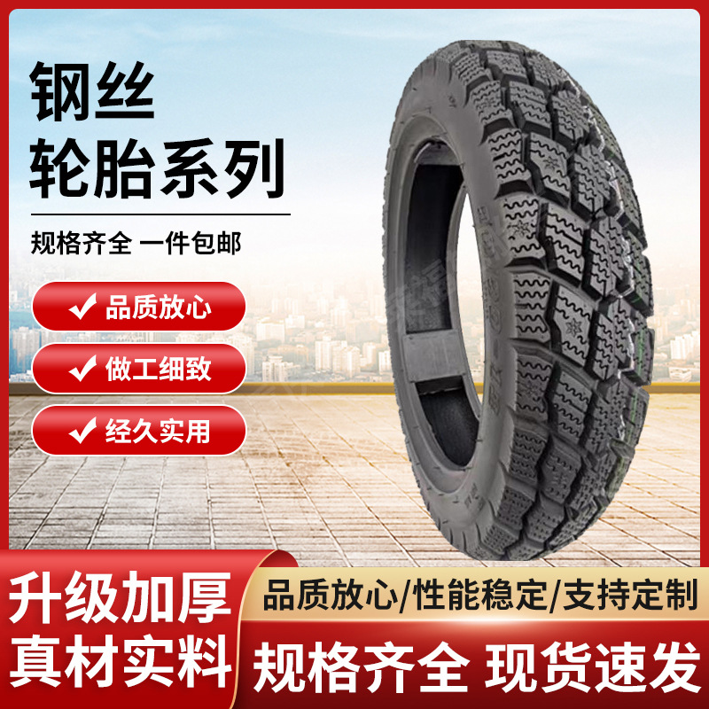 Produsen lebih dari stok spesifikasi ban vakum sepeda motor elektrik seri ban kawat baja menebal salju depan dan belakang anti-selip ban luar