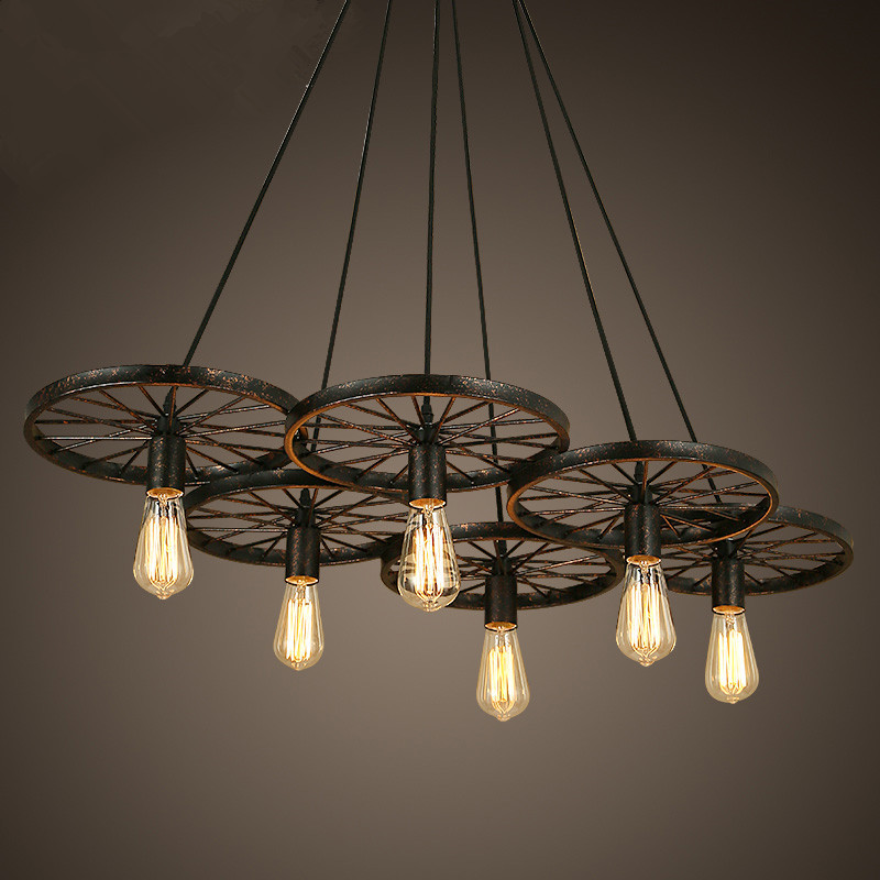 Lampu gantung Retro kepribadian kreatif, lampu roda gaya industri besi negara Amerika bar