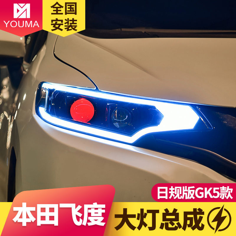 Didedikasikan untuk Honda baru fit rakitan lampu depan dimodifikasi LED lampu siang hari LED lensa lampu sein lampu LED