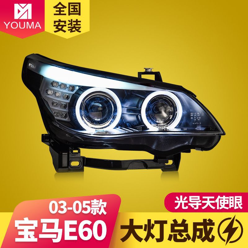 Didedikasikan untuk BMW 5 seri E60 pemasangan lampu depan 520523525530 dimodifikasi LED mata malaikat berjalan siang hari lensa lampu