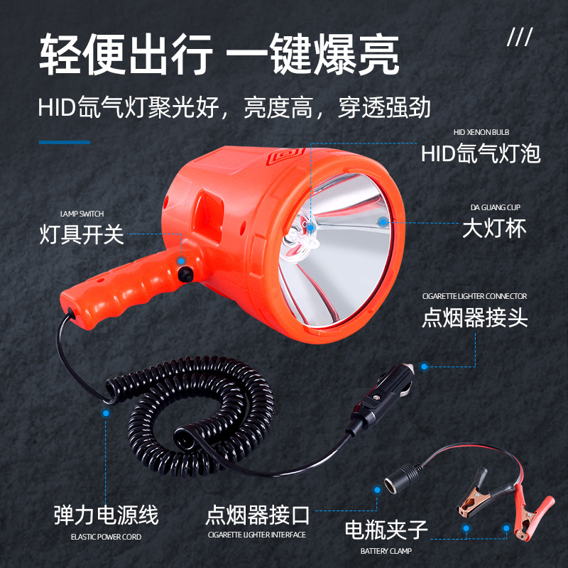 Jujingyang lampu sorot luar ruangan 12v, senter lampu sorot tahan air xenon Kendaraan remote super terang 160W