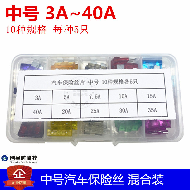Lampu xenon hibrida Sekring mobil, ukuran sedang 3A ~ 35A Sekring mobil/masukkan 10 jenis/5 buah