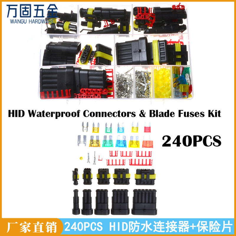 240 buah konektor tertutup mobil, konektor tahan air mobil Sekring lampu xenon HID dalam kotak