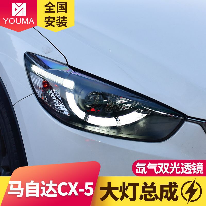 Khusus untuk Mazda CX-5 perakitan lampu depan dimodifikasi sendok LED siang hari lampu ganda lensa cahaya lampu depan xenon