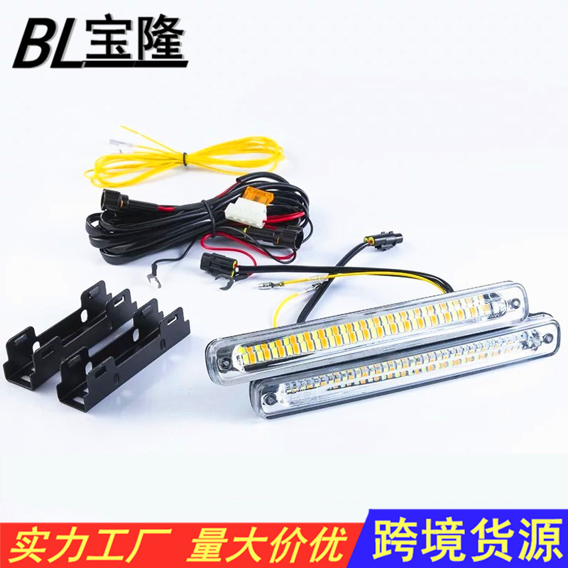 Lampu berjalan siang hari LED mobil tiga warna, lampu berkendara siang hari universal super terang putih hingga kuning