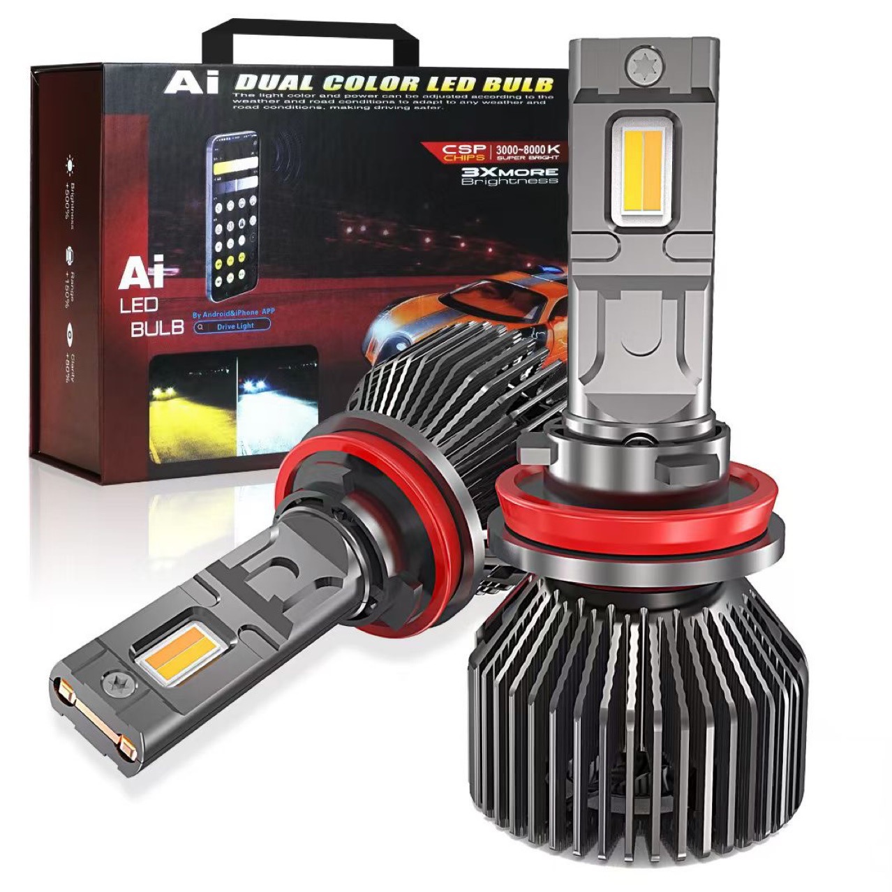 Lintas Batas Baru Bluetooth Lampu Depan Mobil LED Pintar APP Dapat Disesuaikan Warna Terang Tinggi Daya Suhu Cocok Kabut Hujan Super Terang Besar