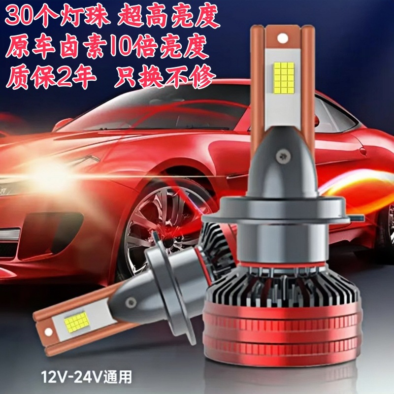 Lampu depan LED mobil, tabung tembaga ganda 36-core, H7 low beam, H4 high/low beam terintegrasi, modifikasi lampu mobil 9005 super terang.