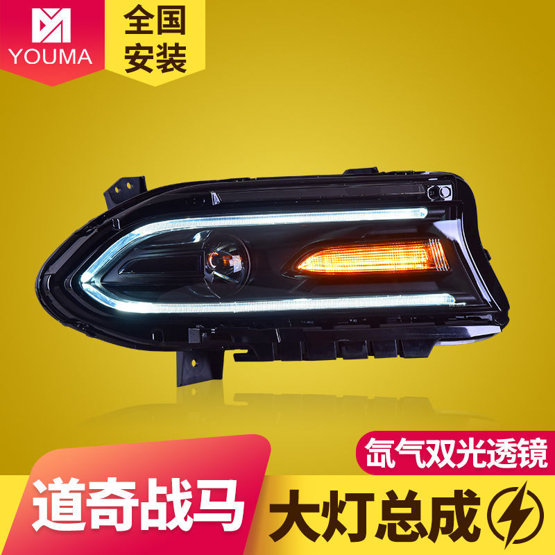 Lampu depan untuk dodge war horse, rakitan lampu depan 08-14 modifikasi LED, lampu jalan siang hari, lampu mengemudi lensa kemudi air, lampu xenon